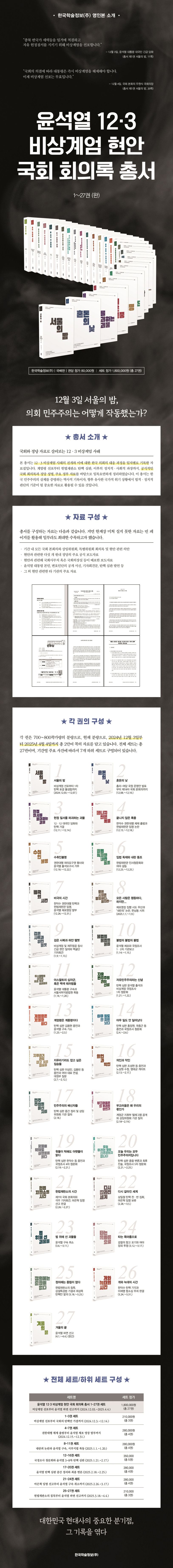 윤석열 12·3 비상계엄 현안 국회 회의록 총서 세트(1~27권) (전 27권)