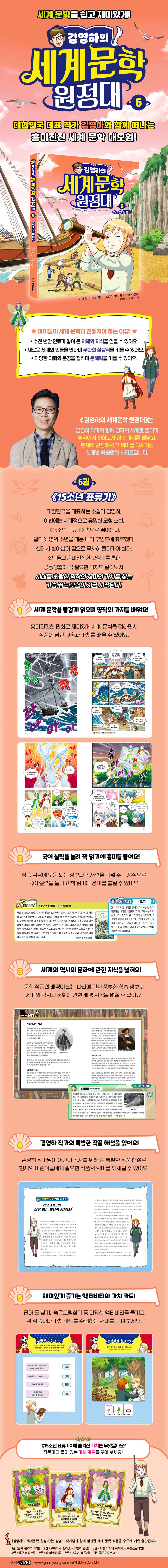 1.세계문학을즐겁게읽으며명작의가치를배워요!대한민국대표작가김영하와함께세계문학속으로모험을떠나요!김영하와문학부친구들이문학작품속으로들어가면서벌어지는흥미진진한모험이야기를통해아이들이쉽고재미있게세계문학을접하고,시대를초월한명작의교훈과가치를배울수있어요.캐나다의아름다운시골마을에이번리와앤의상상속환상적풍경등캐나다와앤의머릿속을충실히재현한섬세한그림체는실제로작품속에들어온것같은현장감을주어작품에더욱몰입하게해주어요.2.국어실력을늘려책읽기에흥미를붙여요!세계문학작품을감상하는데도움이될만한문학개념을소개하고작가,작품,등장인물에관한다양한배경지식을담았어요.또책읽기에적용하면좋은독서방법등독서력을키워주는정보도담았어요.이를통해아이들이국어실력을키우고책읽기에흥미를붙여좀더쉽게줄글로된원전읽기로나아갈수있어요.3.세계의역사와문화에관한지식을넓혀요!세계문학작품의배경이되는시대와공간에대해알게되면작품을더욱재미있게감상할수있을뿐아니라풍부한교양지식을쌓을수있어요.책에서는각작품별로배경이되는시대와나라에대한이해도를높여줄다양한학습정보를수록했어요.책을읽는것만으로도작품감상은물론세계의역사와문화에관한배경지식까지넓힐수있어요.4.김영하작가의특별한작품해설을읽어요!김영하작가님이어린이독자를위해쓴특별한작품해설을수록했어요.시대를초월한명작은변하지않는가치를담고있지만동시에현재의관점에서다시읽히고해석돼야해요.김영하작가님이세계문학작품을읽고21세기현재의어린이들에게전해주고싶은이야기를작품해설로담았어요.어린이들의마음에닿을김영하작가님만의특별한작품해설을읽어보세요.아이와어른이함께읽고이야기를나누는시간을가져보는것도좋아요.5.재미있게즐기는액티비티와가치카드!숨은그림찾기,미로찾기,단어뜻찾기등다양한액티비티를즐겨보세요.작품속공간과이야기에관련된내용으로액티비티를꾸며더욱재미있게즐길수있어요.또한세계문학의가치를찾아내는재미를독자들도느낄수있도록실물가치카드를부록으로수록했어요.문학작품에숨겨진가치를깨닫고가치카드를수집하는재미도느껴보세요.*인증유형:공급자적합성확인