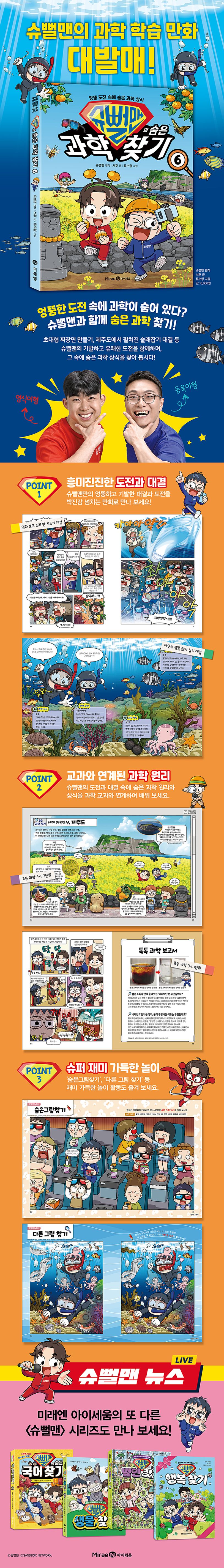 《슈뻘맨의 숨은 과학 찾기》는 유튜브 크리에이터 슈뻘맨의 기발하고 유쾌한 도전을 함께하며, 그 속에 숨은 과학 원리와 상식을 찾아 보는 과학 학습 만화 시리즈입니다. 3D 영화를 보며 배우는 ‘3D 영화의 제작 원리’, 제주도를 여행하며 배우는 ‘현무암과 화강암의 특징’까지! 슈뻘맨의 도전과 대결을 즐기다 보면 어느새 과학 교과와 연계된 지식이 쑥쑥 자라 있을 거예요. 그럼 지금부터 슈뻘맨과 함께 숨은 과학을 찾으러 떠나 볼까요?