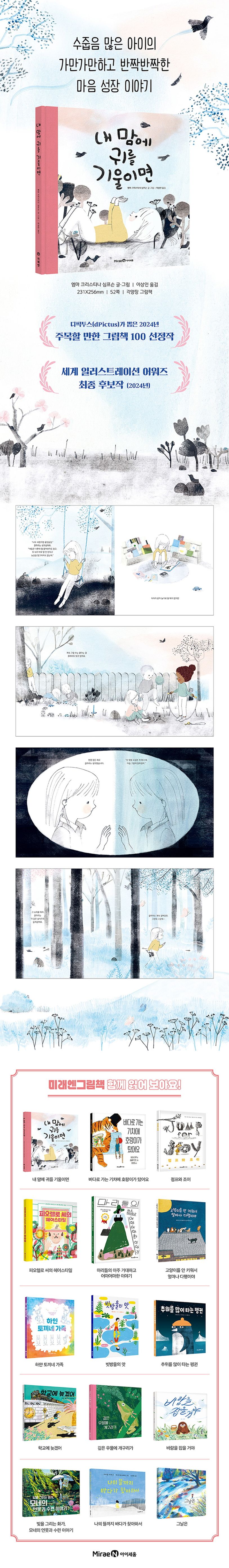 사람들은 항상 클라라를 너무 소심하다고 했다. 클라라도 그런 줄로만 알고, 주로 혼자 놀며 조용히 지냈다. 하지만 사실은 클라라도 친구들과 함께 놀고 싶었다. 그러나 친구들을 만나면 무슨 말을 해야 할지 머릿속이 하얘지며 입이 잘 떨어지질 않았다. 수줍음 많은 마음속에도 반짝반짝한 용기와 호기심이 이미 모두 들어 있다는 메시지를 담은 그림책. 디픽투스(dPictus)가 뽑은 ‘주목할 만한 그림책 100’ 선정작이며, ‘2024 세계 일러스트레이션 어워즈’ 최종 후보작이다.