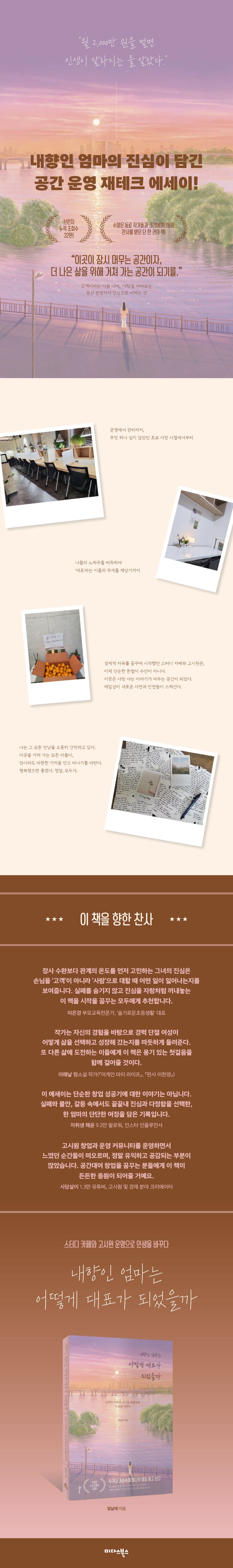 창업 전 알아야 할, 선배 창업가들의 솔직한 노하우가 궁금한 독자들뿐 아니라 ‘내향인 엄마’의 진심 어린 공간 운영 기록을 바라보고자 하는 독자들에게도 선물 같은 책이 될 것이다.