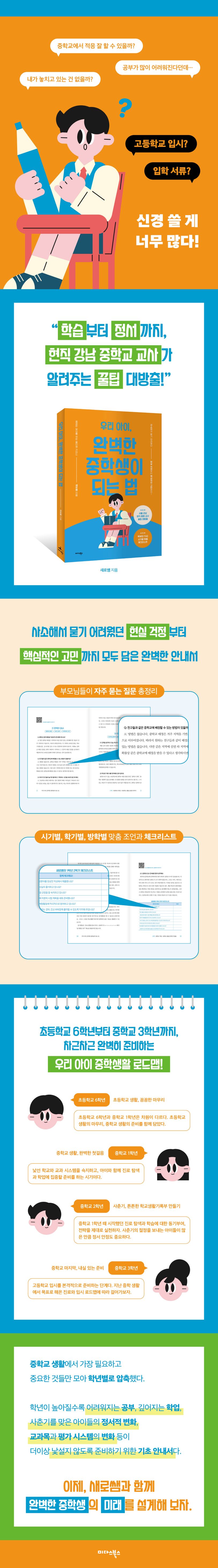 예비 중학생, 혹은 중학생을 자녀로 둔 부모들이라면 이 학기와 방학이 지나기 전에 반드시 이 책을 읽기를 바란다!