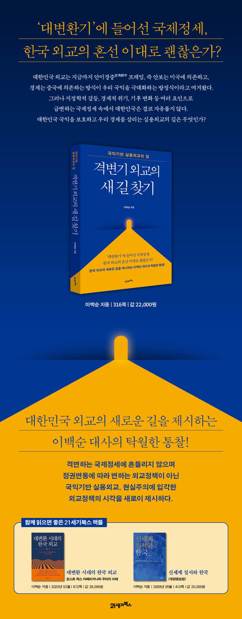 대한민국 국익을 보호하고, 한국 경제를 살리는 실용외교의 길은 무엇인가? 격변하는 국제정세에 흔들리지 않으며 정권변동에 따라 변하는 외교정책이 아닌 국익기반 실용주의, 현실주의에 입각한 외교정책의 시각을 새로이 제시한다. 35년간 외교부 공직생활로 다져진 실무경험과 탄탄한 이론을 겸비한 저자가 대한민국 외교의 근본적인 문제점인 외교정책의 혼선에 대한 원인을 규명하고, 이로 인한 폐해를 지적하며 개선할 방안을 『격변기 외교의 새 길 찾기』에서 제시한다.