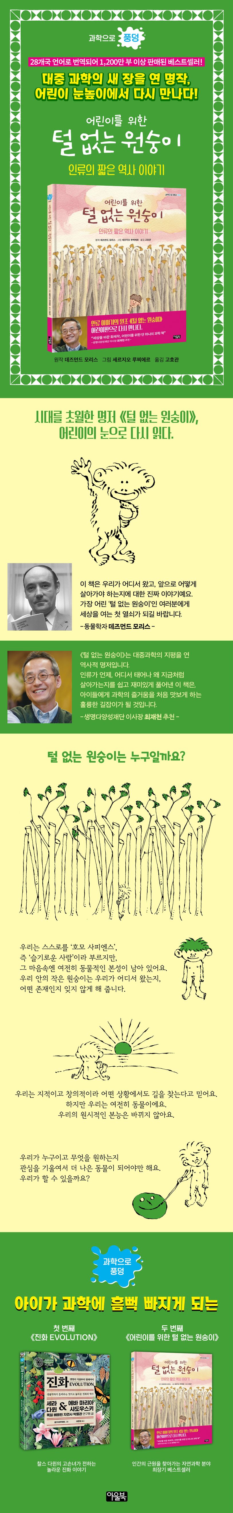 《어린이를 위한 털 없는 원숭이》는 사람 역시 동물 중 하나로 우리는 어디서 왔는지, 우리가 왜 이렇게 살아가고 있는지 우리 안의 숨겨진 본능은 무엇인지를 이해하기 쉽게 설명한다.