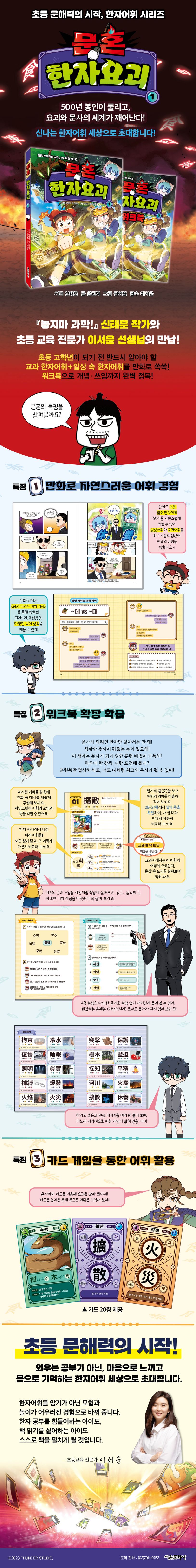 『문혼: 한자요괴』는 베스트셀러 학습만화 《놓지마 과학》으로 어린이들에게 큰 사랑을 받아온 신태훈 작가와, 초등 교육 전문가인 이서윤 선생님이 함께한 특별한 작품입니다. 한자에서 태어난 요괴와 그 힘을 다루는 주인공의 모험 속에서, 어린이들은 자연스럽게 핵심 어휘와 개념을 익히게 됩니다. 재미있는 만화 스토리와 교과서 속 실제 어휘 맥락을 연결해, 지루하지 않으면서도 체계적인 학습 효과를 제공합니다. 또한 워크북을 통해 어휘력을 확실히 다지고 확장할 수 있어, 읽는 재미와 학습의 성취감을 동시에 느낄 수 있습니다.
