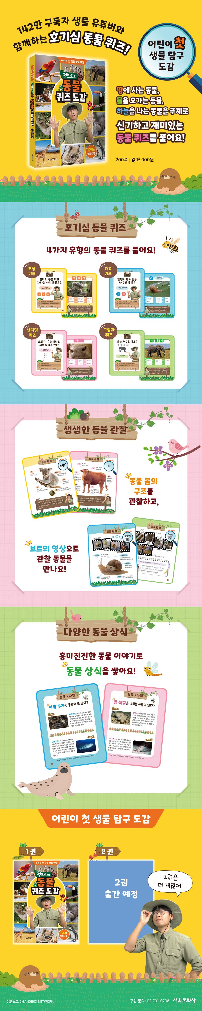 생생한 사진으로 동물 몸의 구조를 관찰하고, 브르의 영상으로 관찰 동물을 만나요! 흥미진진한 동물 이야기로 상식 쏙쏙 다양한 동물 상식도 쌓을 수 있어요.