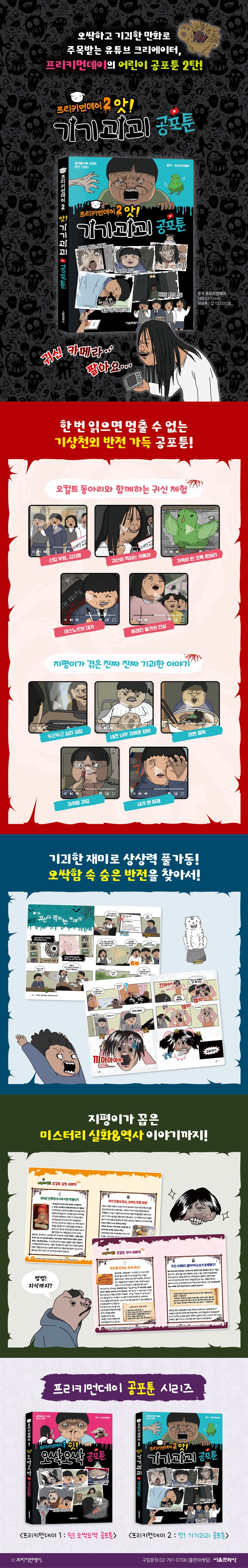 유튜브에서 월요일마다 기괴한 만화를 선보이며 인기를 끌고 있는 프리키먼데이가 어린이를 위한 반전 공포툰을 출간했습니다!