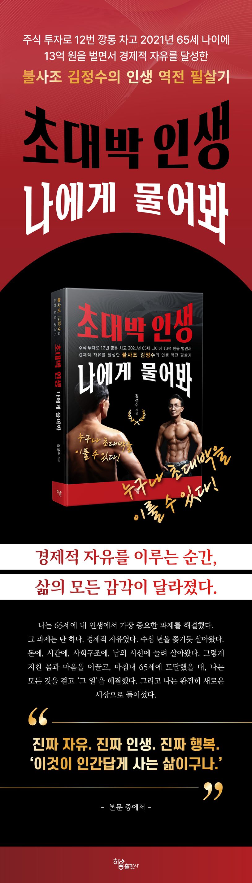『초대박 인생 나에게 물어봐』는 수많은 실패와 역경 속에서도 결코, 포기하지 않고 끝내 대박 인생을 성취하고 초대박 인생을 향하여 나아가고 있는 저자의 실제 경험과 깊은 통찰력을 담아낸 특별한 자기계발서입니다. 저자는 65세가 될 때까지 ‘Must’라는 삶의 필수적인 짐과 책임에 짓눌려 살아가며, 자신의 진정한 가치를 찾지 못하고 방황했습니다. 그러나 인생의 근본적인 전환점을 맞아 과감히 변화했고, 결국 누구나 꿈꾸는 대박의 인생을 이루어 냈습니다. 이 책은 단순히 성공한 사람의 이야기가 아니라, 평범한 사람도 체계적이고 구체적인 접근 방식을 통해 반드시 성공할 수 있다는 희망과 방법을 명확히 제시합니다.