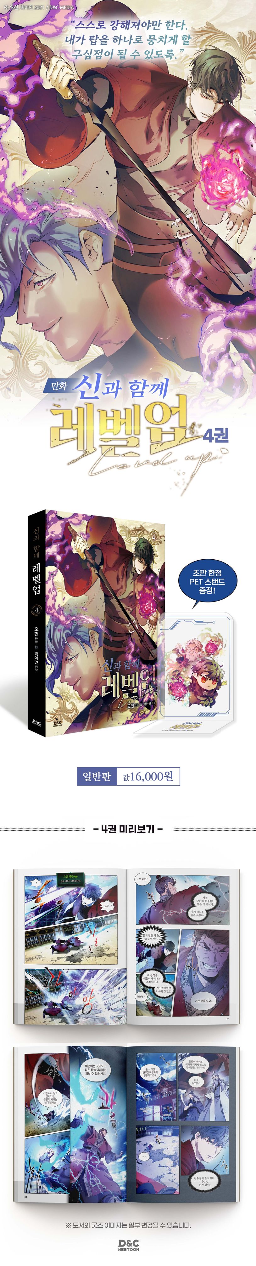 〈신과 함께 레벨업〉은 동명의 인기 소설(흑아인 저)을 오현 작가만의 화려한 작화로 재탄생시킨 작품으로, 연재 시작과 동시에 열렬한 팬덤을 형성하며 나날이 인기를 더해 가고 있다. 특히 시원시원한 액션 장면에 맞춰 새롭게 편집한 컷 구성은 스크롤 연재와는 또 다른 새로운 매력으로 독자들의 몰입을 돕는다.