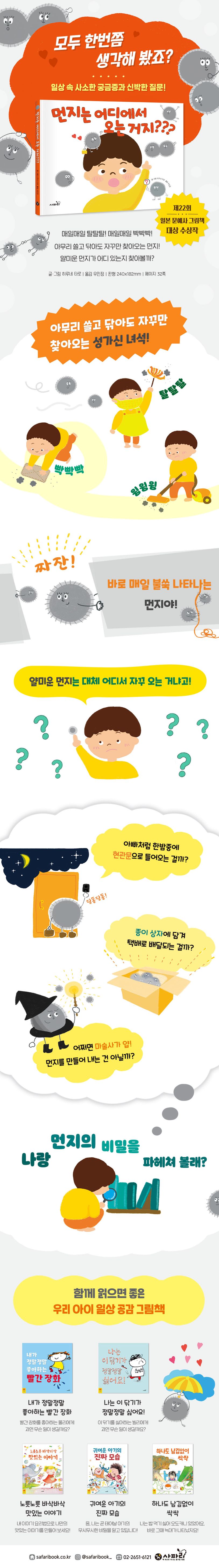 날마다 깨끗이 쓸고 닦아도 어쩐 일인지 먼지는 자꾸만 쌓여요. 그럴 때면 "도대체 이 먼지들은 어디에서 오는 거지?" 하고 투덜대며 고개를 갸우뚱하게 되지요.