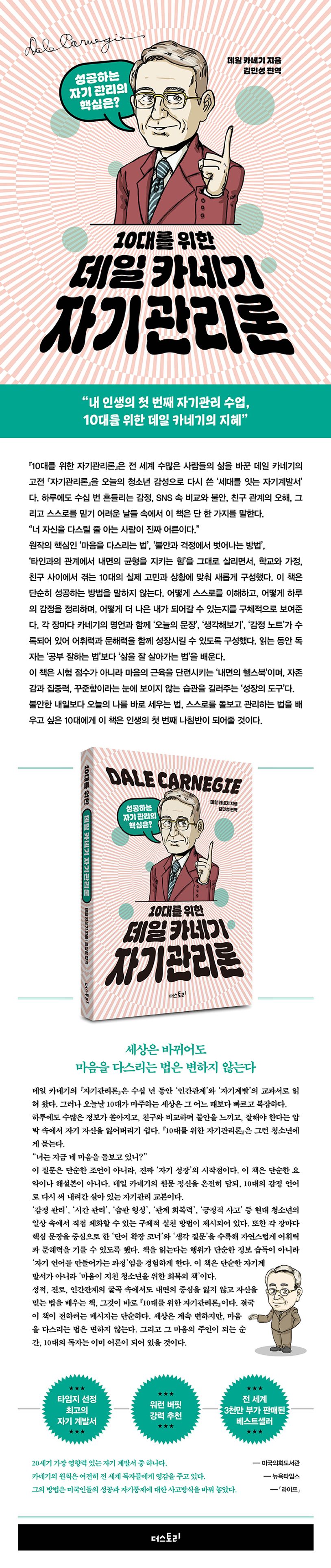 《10대를 위한 자기관리론》은 전 세계 수많은 사람들의 삶을 바꾼 데일 카네기의 고전 《자기관리론》을 오늘의 청소년 감성으로 다시 쓴 ‘세대를 잇는 자기계발서’다.