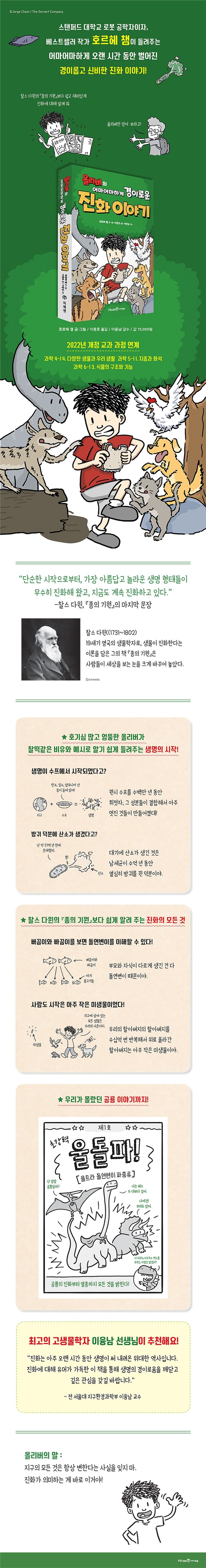 느려 터진 아빠의 컴퓨터 때문에 친구들과 게임을 할 수 없게 되자, 새 컴퓨터를 사기로 마음먹은 올리버! 돈을 모으기 위해 고생물학자 버사 박사님 댁에서 고양이 밥을 주는 아르바이트를 하면서 버사 박사님 댁 고양이들에게 쫓겨 갈기갈기 찢길 뻔하다가 살아남는다. 또 요리 수업 시간에 온갖 재료로 섞어 끔찍한 잡탕 수프를 만들기도 하고, 지저분한 연못 속에 풍덩 빠져 더러운 오물을 뒤집어쓰기도 한다. 심지어 새 책을 홍보하기 위한 광고에 수정액이 묻는 바람에 그만 똥 광고가 되어 버리는 대참사를 겪기도 한다. 엉뚱하고 호기심 많은 올리버가 겪는 좌충우돌 재미난 이야기를 낄낄거리며 읽다 보면 고양이가 사자와 호랑이 같은 사나운 짐승들과 친척이었고, 초기 지구의 모습도 부유물이 가득한 연못과 다르지 않았다는 사실을 알게 된다. 또 아빠와 간 낚시에서 물고기가 잡히지 않는 이유를 생각하면서 돌연변이와 자연 선택에 대해서 몸소 이해하게 되고, 버사 박사의 닭에게 쫓기며 새가 공룡에서 진화했다는 놀라운 사실도 어느새 알게 된다. 자칫 어려울 수 있는 과학 개념인 ‘진화’를 재미있는 이야기와 자연스럽게 엮어서 풀어 쓴 유쾌한 과학책이다.