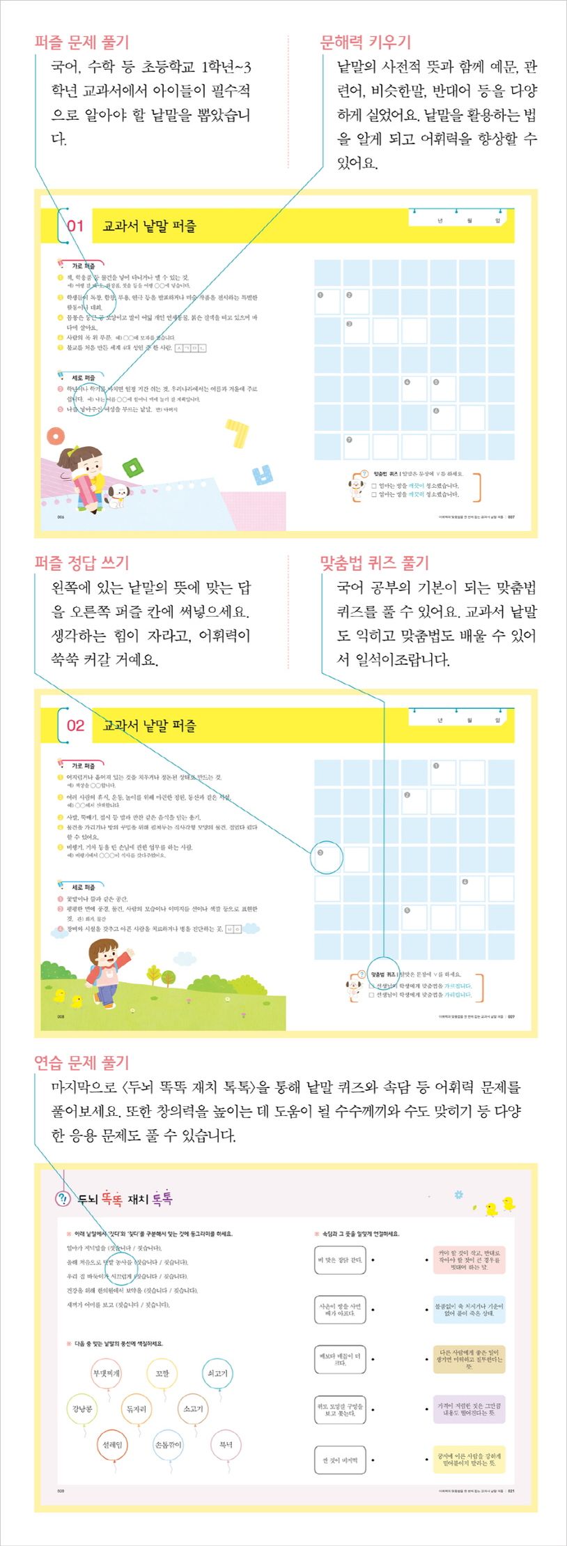 퍼즐과 맞춤법을 동시에 익히다 보면 문해력과 국어력을 두 배로 높이는 효과를 거둘 수 있습니다.