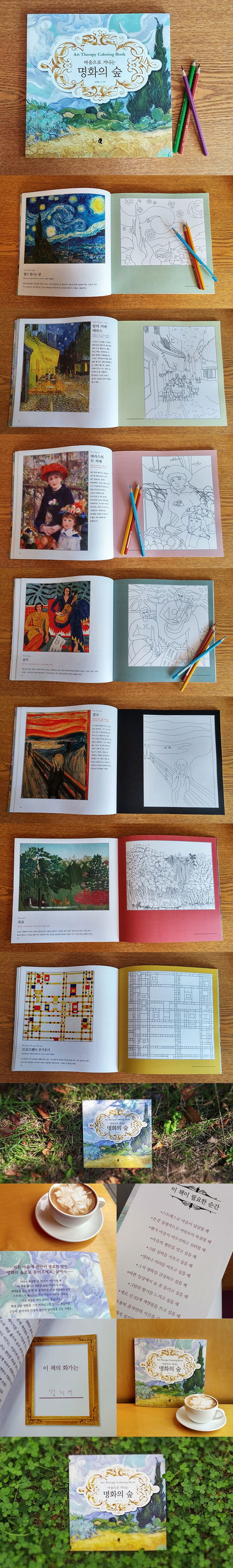 이 책은 색연필을 들고 한 장 한 장 명화를 따라 색칠하며 스트레스를 해소시켜주고 마음을 치유해주는 아트 테라피 컬러링북이다. 빈센트 반 고희의 ‘고흐의 방’과 요하네스 페르메이르의 ‘진주 귀고리를 한 소녀’, 에드바르 뭉크의 ‘절규’, 프리다 칼로의 ‘가시 목걸이와 벌새가 있는 자화상’ 등 우리가 알만한 예술가들의 명화 37점이 담겨있다. 조용히 마음의 소리에 귀를 기울이고 색칠을 하다보면 어느새 나만의 명화가 완성되어 있을 것이다.