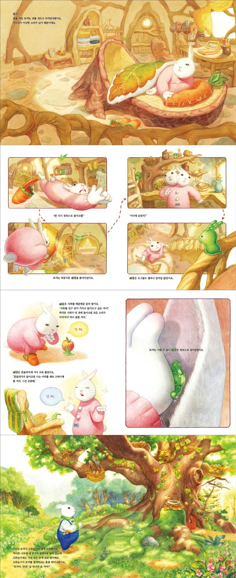 그리고 귓속에서 무언가 또르르 굴러 나왔지요. 그건 바로, 오목눈이가 토끼에게만 귓속말로 말해 준 비밀이었어요! 젤리처럼 생긴 비밀은 자꾸만 밖으로 뛰쳐나가려고만 했어요. 토끼는 있는 힘을 다해 비밀을 막았죠. 토끼가 자기 마음속 비밀을 말하자 입 밖으로 또 하나의 비밀이 튀어 나왔어요. 두 비밀은 현관으로 조르르 달려갔고요. 토끼는 비밀이 새어나가지 않도록 막을 수 있을까요?
