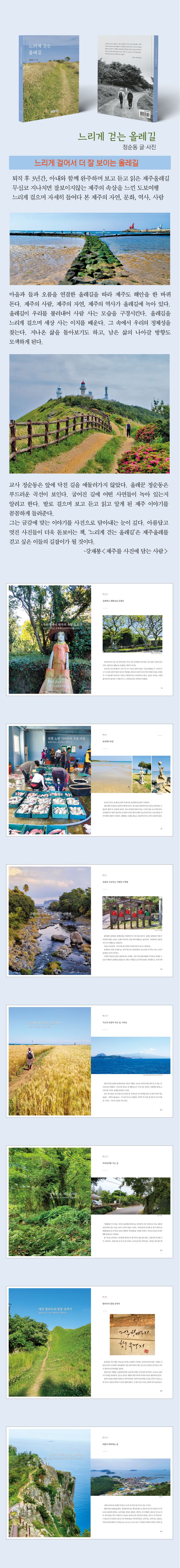 퇴직 후 최근 3년간 아내와 함께, 제주올레길 437km 27코스의 긴 여정을 느리게 걸었다. 천천히 걸으며 제주올레길에 녹아있는 제주의 사람, 제주의 자연, 제주의 역사를 보고 듣고 읽었다.