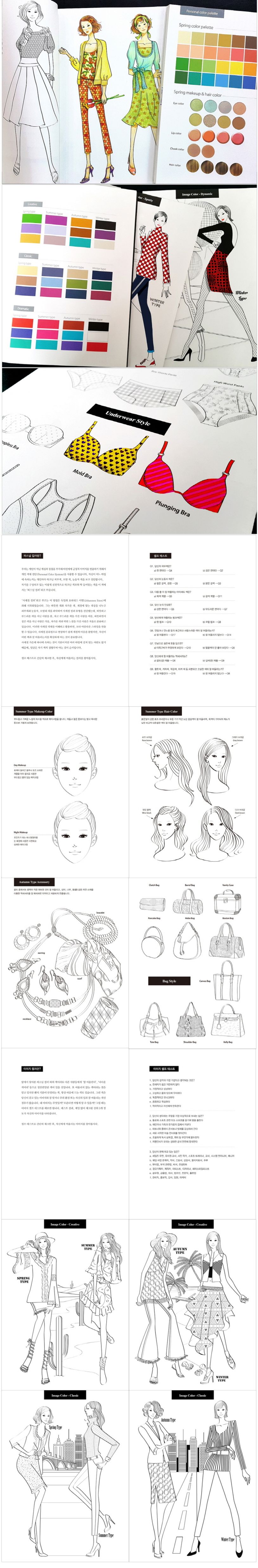 『나만의 이미지 컬러링』은 기존의 컬러링 책들과 달리, 기분전환뿐만 아니라 나만의 컬러와 이미지를 찾아서 익히는 기회까지 제공해 주는 다용도 컬러링북이다.본격적인 컬러링에 앞서 자신의 퍼스널 컬러를 찾아보는 셀프 테스트가 첫 장에 자리 잡고 있다. 사계절 타입별로 간략한 설명이 곁들여져 있고, 테스트 결과에 맞춰서 세분화된 그림을 독자가 색칠하는 구성이다.