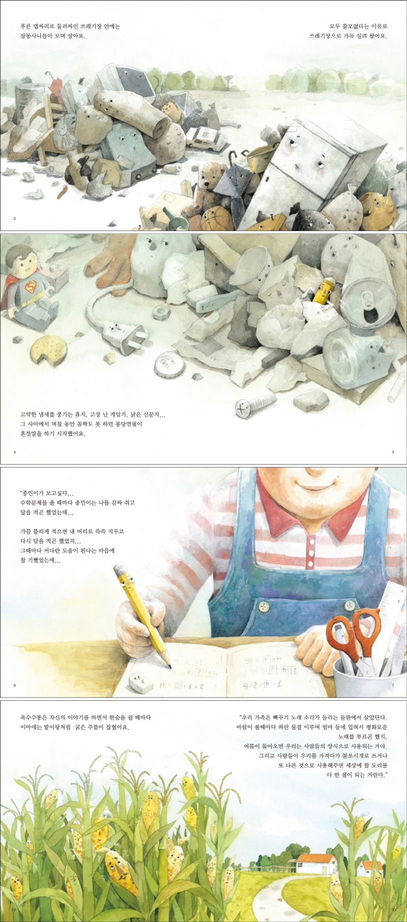 시인인 이상묵 작가의 이야기와 한국화로 유명한 임승현 작가의 그림으로 이루어진 그림책이다. 글을 읽고 그림을 보면서 작가들이 전하려는 메시지에 가슴이 따뜻해지고 미소가 띄게 된다. 이 세상에서 가장 더럽고 냄새나는 쓰레기장에 버려진 세 주인공의 이야기와 그림은 쓰레기장이 아름답게 보이게 한다. 이 그림책을 읽는 아이들도 자신과 세상을 아름답고 따뜻하게 보게 될 것이다.