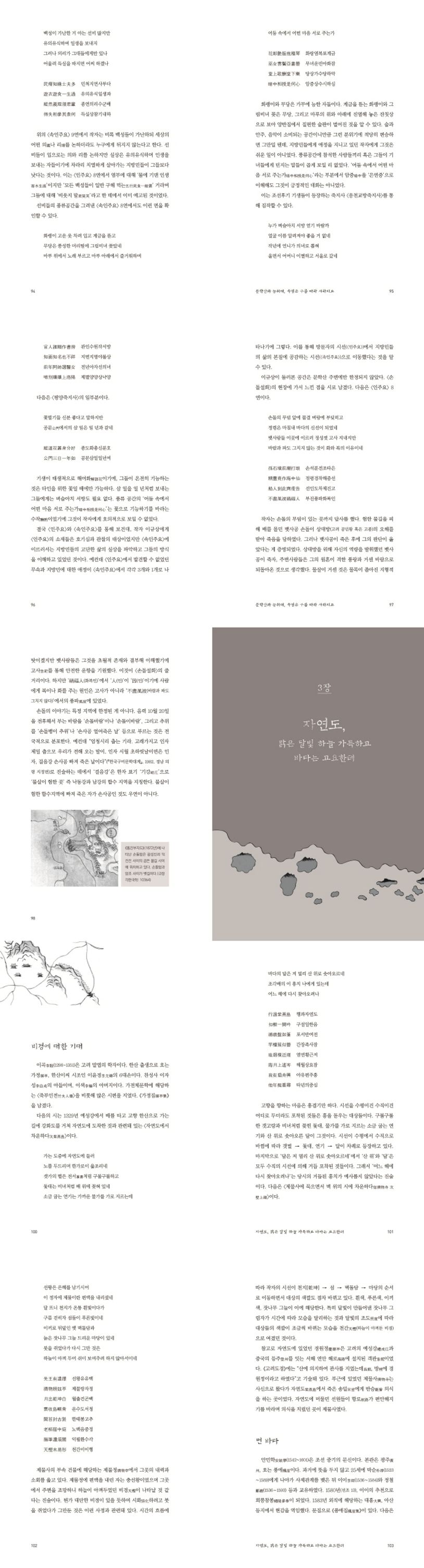 옛사람들이 내민 손을 잡고 색다른 여행이 될 수 있기를. 이 책에는 인천의 지형, 기후, 생물, 주민, 교통, 역사, 전설과 관련된 한시를 다루고 있다. 지역문화를 계승할 만한 가치 높은 작품들로 선별하였으며 번역, 한자, 음독, 해설 순으로 상세하게 풀이하였다. 해당 지역과 관련된 한시는 지역의 문화정체성을 바로 세우는 데에 큰 역할을 담당할 것이다. 한시 속 장소가 나타난 옛지도를 함께 실어 쉽게 이해할 수 있게 만들었다. 해당지역과 그곳의 기능을 알면 한시에 숨어있던 행간을 쉽게 파악할 수 있다. 이 책이 과거의 단순한 복원이 아니라 미래의 인상을 만들어나가는 자양분이 되길 바란다.