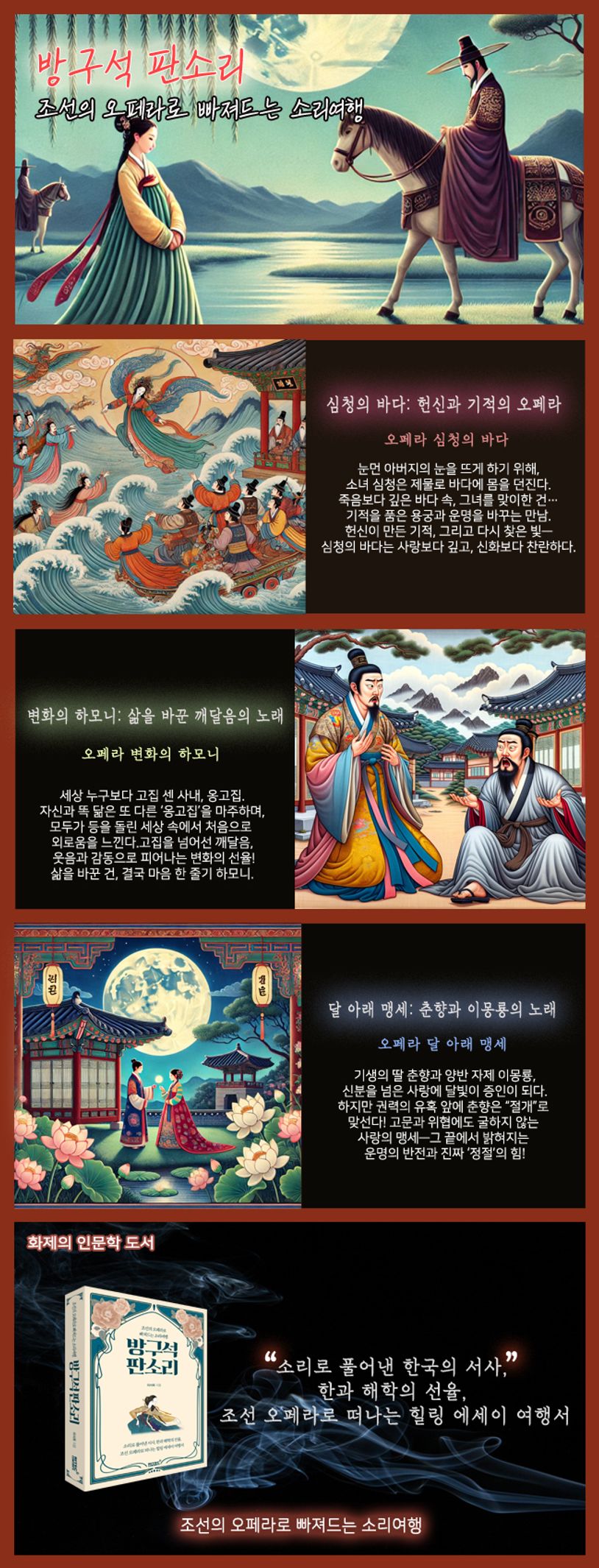 전통은 낯설지 않습니다. 우리가 몰랐던 사랑과 변화, 용기의 서사는 여전히 지금의 우리를 위로하고 움직입니다. 이 책은 판소리라는 소리의 예술을 통해, 독자 한 사람 한 사람에게 단편소설처럼 읽히는 서사와 감동을 선물합니다.
