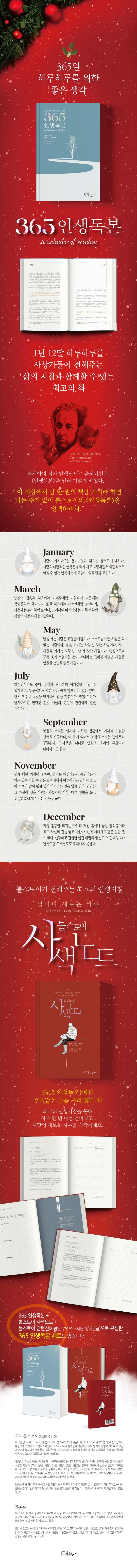 이 책은 《365 인생독본》에서 주옥같은 글을 가려 뽑은 책이다. 『톨스토이 사색노트』는 참된 지혜, 선(善), 도덕, 사랑, 지식의 탐구 등 무릇 인간이라면 한번쯤 고뇌했음직한 삶의 화두를 제시함으로써 독자들로 하여금 정신을 더욱 가다듬어 고양된 감정을 경험할 수 있도록 길라잡이 구실을 하고자 기획한 책이다. 제목을 ‘사색노트’라고 명명한 것도 그런 취지를 살리기 위함이다.