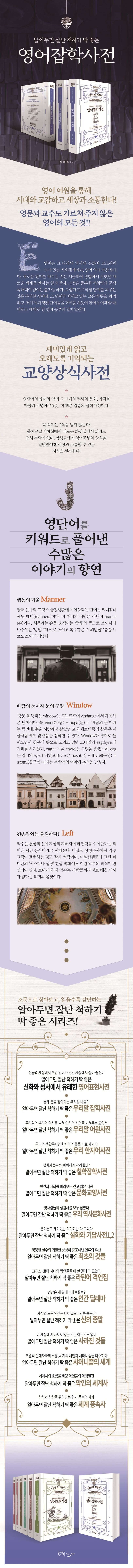 영단어의 뿌리를 밝히고, 그 단어가 문화사적으로 어떻게 변모하고 파생되었는지 친절하게 설명해주는 인문교양서이다. 정치, 경제, 군사, 외교, 문화, 예술, 종교 등 모든 분야를 망라하고 있으며, 어떤 장을 먼저 펼쳐보아도 상관없다. 각 장마다 독자성을 갖추고 있기 때문이다. 영단어가 가지고 있는 고유의 의미를 파악하고 이해하는 동안 여러분의 어휘 실력은 놀랍도록 향상될 것이다.