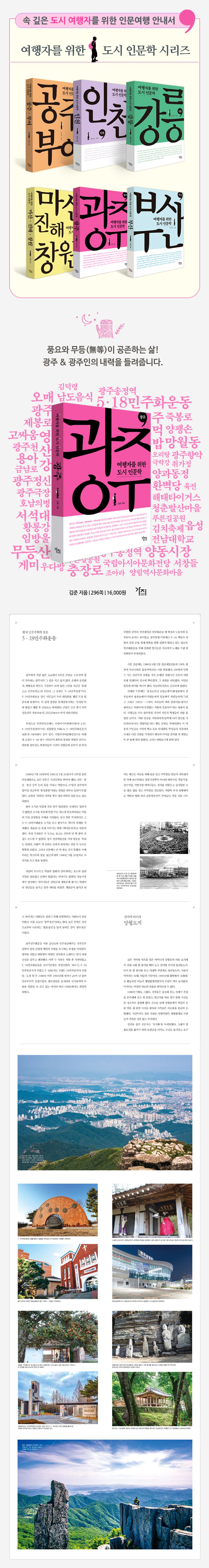 속 깊은 도시여행자를 위한 광주 인문여행 안내서. ‘5·18민주화운동’이라는 심리적 무게감 때문에 어떻게 읽어야 할지 조심스러운 텍스트가 광주광역시다. 이 도시에 오래 살면서 도시의 근현대사를 연구해온 저자는 광주를 의향(義鄕), 예향(藝鄕), 미향(味鄕)의 ‘삼향(三鄕)’이라는, 고전적이지만 최적인 정체성으로 읽어낸다. 광주에는 임진란과 한말 위기에 처한 나라를 목숨 바쳐 구한 호남의병이 있었고 일제강점기 독립운동의 불씨를 살린 광주학생운동이 있었고 1980년의 광주정신이 있었다. 한국화를 대표하는 남종화, 민족혼이 담긴 남도소리 등 남도의 문화가 소비되고 유통되는 중심에 광주가 있고, 음식 역시 풍요로운 남도의 맛이 한 상에 모여 아무 식당이나 문 열고 들어가도 실망하지 않는 곳이 광주다. 맛과 멋 너머로 펼쳐지는 무등(無等)의 삶이 궁금하다면 이제 이 사용설명서를 들고 그 땅을 걸어볼 때다.