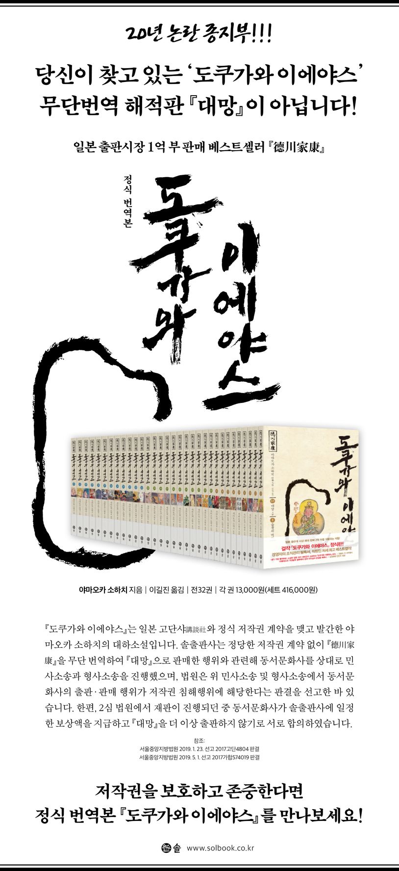 1950년 3월부터 1967년 4월까지 무려 17년 동안 4,725회에 걸쳐 일본의 대표적 언론인「츄니치 신문」「홋카이도 신문」「코베 신문」에 동시 연재된 경이로운 기록을 가진 작품을 엮은 것이다. 단일 작품으로는 세계 최대 규모인 이 작품엔 철저한 역사적 고증을 기초해서 독자의 의표를 찌르며 자유자재하는 광활한 상상력이 종횡무진, 시종일관 관통하고 있다. 작가는 이 걸작을 통해 분열과 싸움으로 뒤덮인 센고쿠 시대를 마침내 평정하고 ‘평화의 시대’를 열 수 있었던 여러 인간성의 조건과 역사의 조건들을 깊이 있게 파헤쳐 이를 정갈하면서도 무게 있는 문체로 탁월하게 그리고 있다.