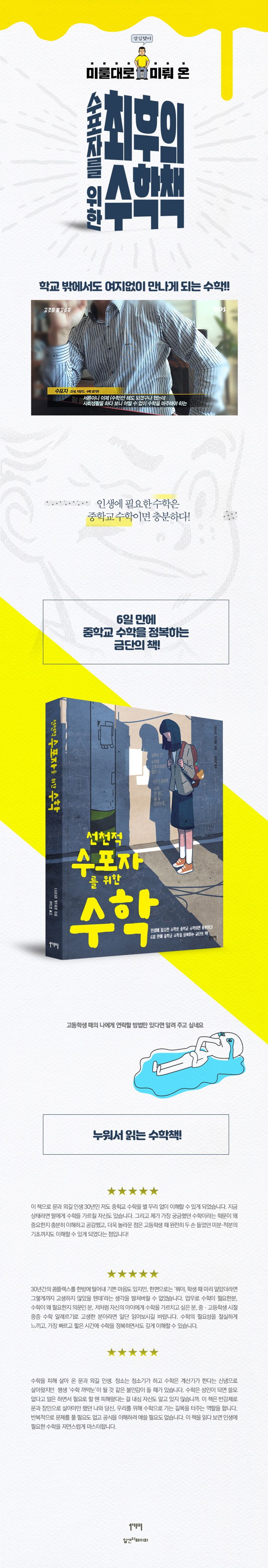 수학을 피해 살아 온 문과 외길 인생. 청소는 청소기가 하고 수학은 계산기가 한다는 신념으로 살아왔지만 평생 ‘수학 까막눈’이 될 것 같은 불안감이 들 때가 있습니다. 수학은 성인이 되면 쓸모 없다고 말은 하면서 필요로 할 땐 피해왔다는 걸 내심 자신도 알고 있지 않습니까. 이 책은 반강제로 문과 장인으로 살아야만 했던 나와 당신, 우리를 위해 수학으로 가는 길목을 터주는 역할을 합니다. 반복적으로 문제를 풀 필요도 없고 공식을 이해하려 애쓸 필요도 없습니다. 이 책을 읽다 보면 인생에 필요한 수학을 자연스럽게 마스터합니다.