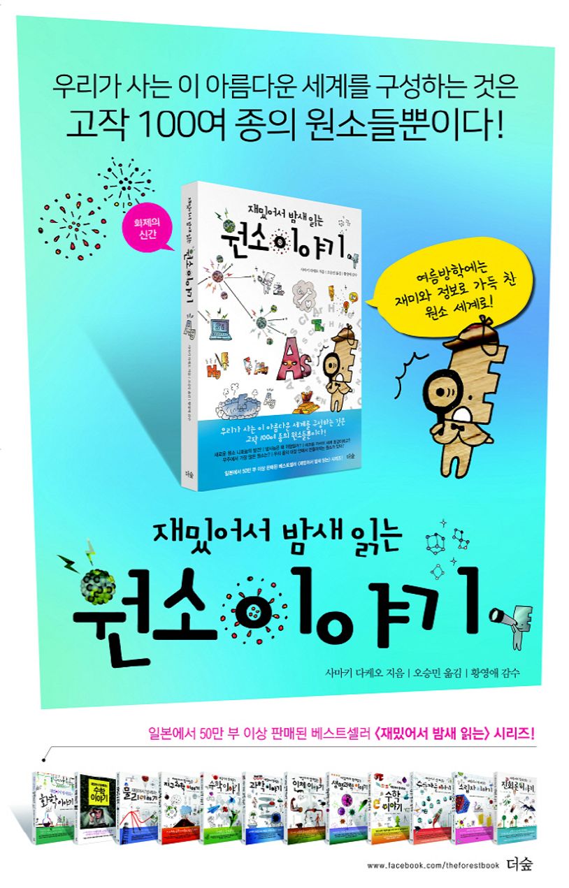 『재밌어서 밤새 읽는 원소 이야기』는 우주에서 제일 많은 수소(원자번호 1번)부터 아시아 국가가 발견해 이름을 붙인 최초의 원소인 니호늄(원자번호 113번), 생존인물의 이름을 딴 두 번째 원소 오가네손(원자번호 118번)까지, 현재까지 밝혀진 총 118개의 원소에 대한 설명을 쉽고 흥미진진한 이야기와 함께 풀어내고 있다. 최근 뉴스거리로 끊이지 않는 방사능, 희소 금속, 희토류 등을 원소의 성질에 빗대어 친절히 설명하는 것은 물론, 원소명의 유래나 원소 발견에 얽힌 일화, 원소의 활용과 그와 연관된 사건 사고에 이르기까지 풍성한 이야깃거리로 가득하다.