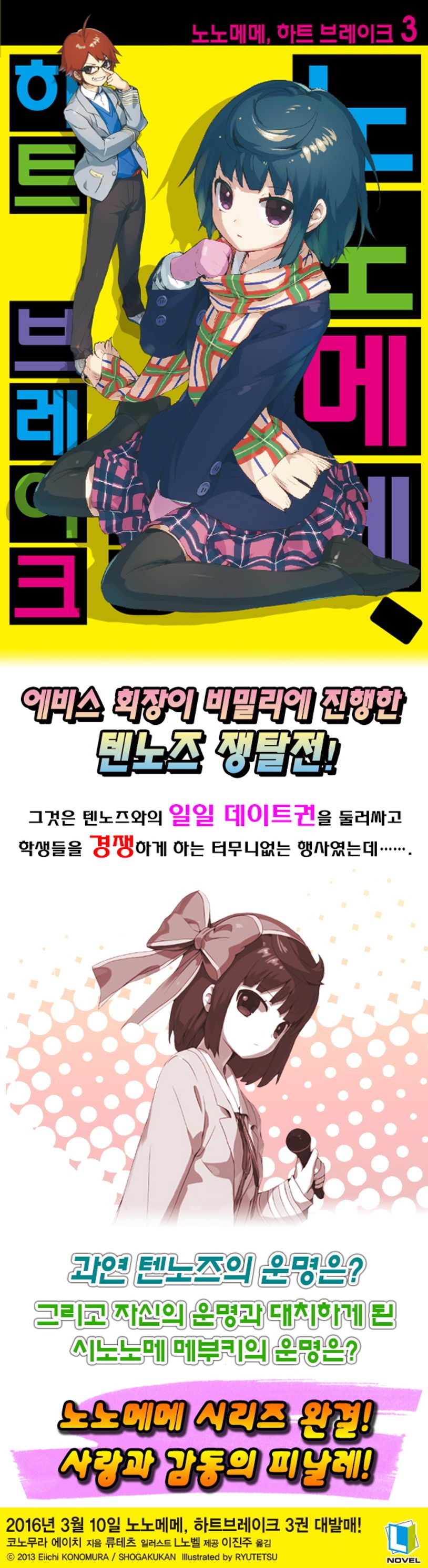 『노노메메, 하트 브레이크』 제3권. 고백 성공률 0%의 세계에서 제일 인기 없는 남자·시노노메 메부키 앞에 제자가 되기를 희망하는 기특한 학생·아리아케 미코토가 나타난다. 어떻게 해서라도 꼭 고백하고 싶은 상대가 있다는 그의 열의에 마음이 움직인 시노노메는 아리아케의 입문을 인정하고 바보 같으면서도 엄한 고백 수행을 개시하는데….