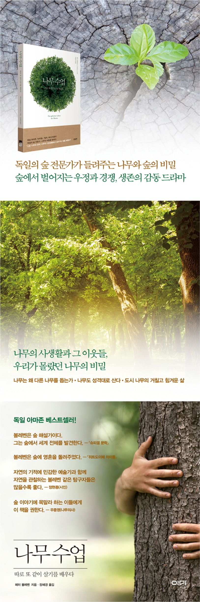 『나무수업』은 독일의 나무 전문가 페터 볼레벤의 저서로, 우리가 알지 못했던 신비로운 나무의 세계로 인도한다. 나무들이 무엇을 느끼고, 어떻게 대화하는지, 동물과 마찬가지로 숨 쉬고 느끼고 소통하는 나무들의 세계에 대해 소개한다. 나무의 생태에 대한 자연과학적 지식과 함께 나무의 생존과 공동체 지향의 삶의 방식을 감동적으로 전함으로써 혼자가 아닌 함께 살기를 배운다.