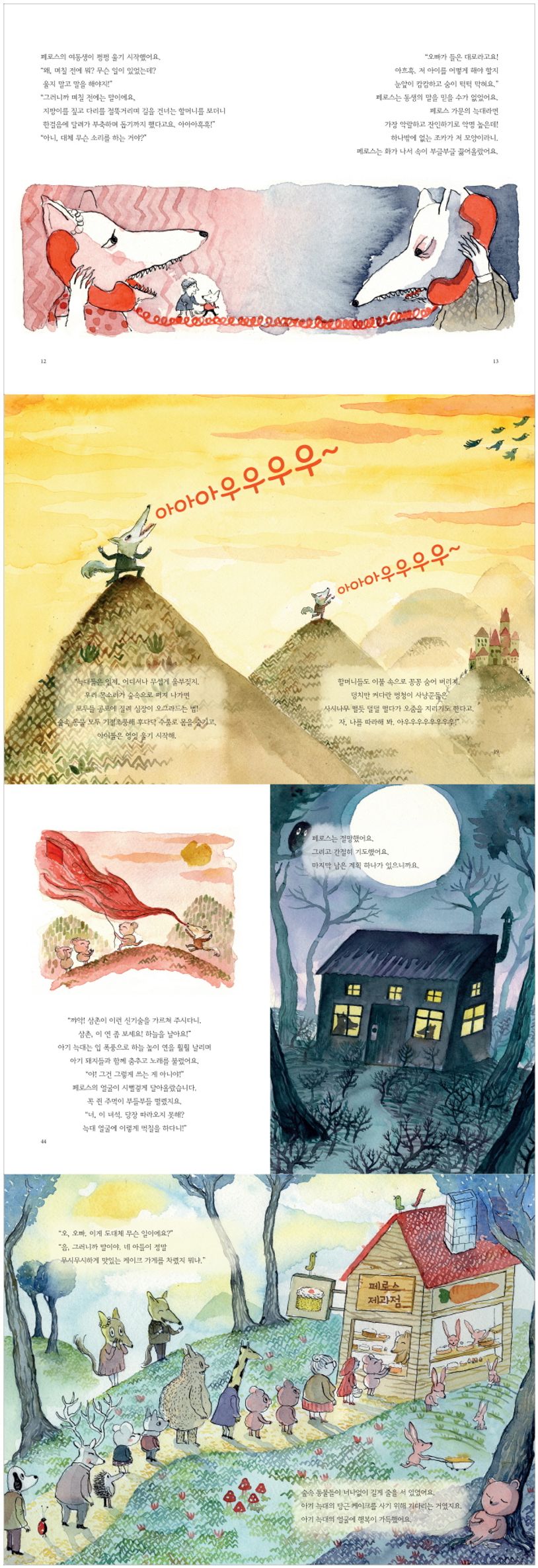 행복 바이러스 아기 늑대처럼 우리 어린이들이 행복해지는 데는 많은 것이 필요하지 않아요. 그저 저마다 타고난 품성대로, 갖고 있는 재능을 마음껏 펼치면서 즐겁게 살면 되지 않을까요? 비록 ‘늑대답게’ 보이지는 않아도 숲 속에 ‘페로스 제과점’을 차려 맛있는 당근 케이크를 굽는 아기 늑대처럼 말이지요. 삼촌 늑대 페로스는 ‘늑대가 되는 법’을 가르치려고 하지만 그것은 삼촌 늑대가 필요하다고 생각한 것일 뿐이었어요. 어른들은 혹시나 삼촌 늑대 페로스처럼 어린이들이 흥미를 갖지 못하는 것들을 필요하다는 이유로 가르치려고 하지는 않았을까요? 저마다 타고난 품성과 재능을 있는 그대로 인정해주고 사랑해준다면 모두가 행복해질 수 있어요. 그런 의미에서《행복한 늑대》는 아이를 키우는 어른은 물론, 교육 현장에 있는 분들, 그리고 인사 담당자들이 함께 읽어도 좋은 이야기입니다. 짧고 재미있는 이야기에 담긴 질문이 의외로 묵직하게 다가옵니다.