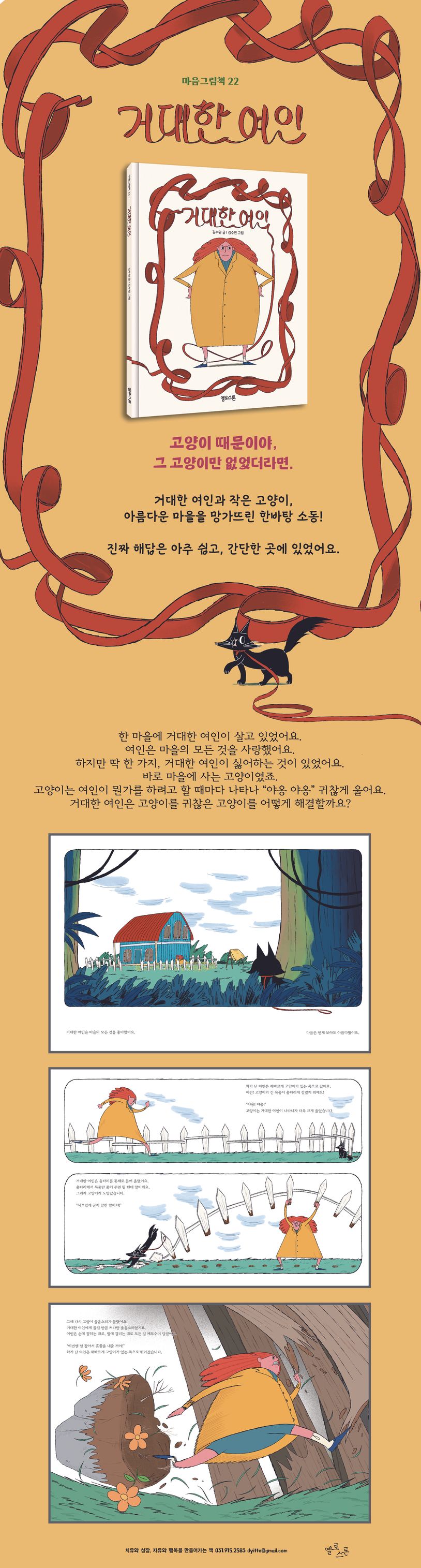 《거대한 여인》은 사소한 문제를 크게 키우고, 조급하게 문제를 해결하려다 더 큰 문제를 만드는 인간의 모습을 유쾌하게 그려낸 그림책입니다.