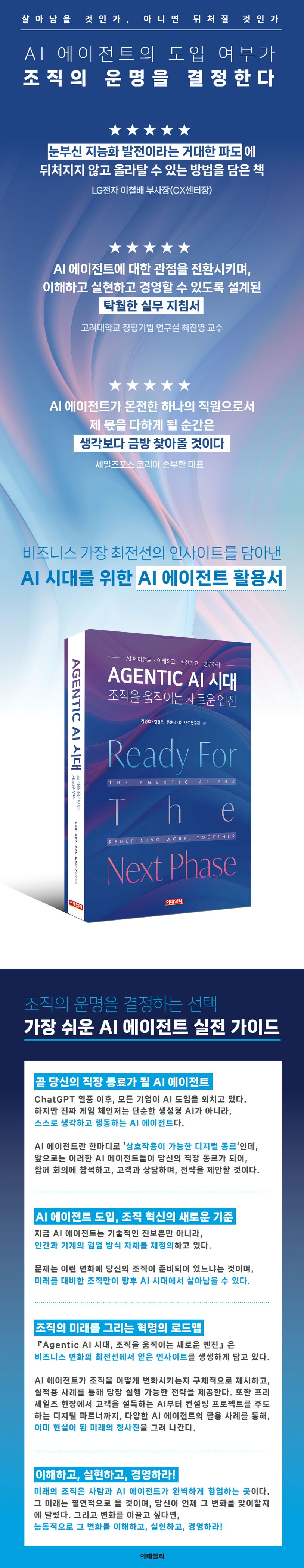 『Agentic AI 시대 - 조직을 움직이는 새로운 엔진』은 이런 변화의 최전선에서 얻은 인사이트를 생생하게 담고 있다. 이 책은 8부에 걸쳐 AI의 발전부터 실전까지, AI 에이전트가 조직을 어떻게 변화시키는지 구체적으로 제시하고, 실적용 사례를 통해 당장 실행 가능한 전략을 제공한다. 또한 프리세일즈 현장에서 고객을 설득하는 AI부터 컨설팅 프로젝트를 주도하는 디지털 파트너까지, 다양한 AI 에이전트의 활용 사례를 보여주며, 이미 현실이 된 미래의 청사진을 함께 그려 나간다.