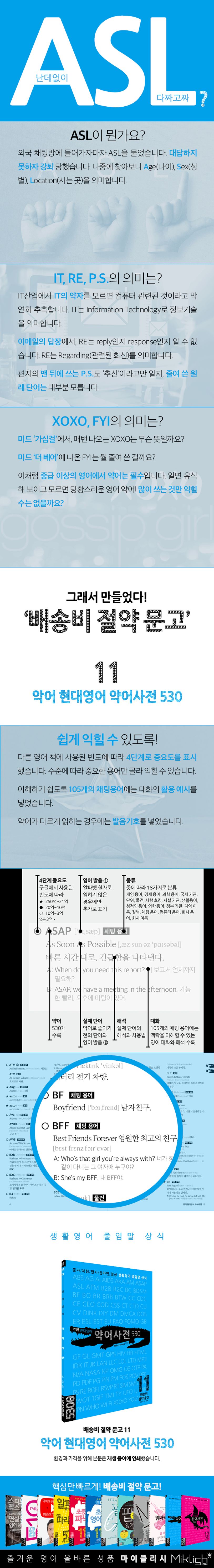 “ASL이 뭔가요?” 채팅방에 들어가자마자 ASL을 물었다. 답변을 못해 강퇴 당했다. 알면 유식해 보이고, 모르면 당황스러운 영어 약어! 많이 쓰는 것만 익힐 수는 없을까? 현대 영어에서 가장 많이 쓰는 영어 약어 530개를 알파벳 순서로 담았다. 읽고 이해할 수 있도록 약어로 줄이기 전의 단어와 뜻, 발음 기호, 4단계의 중요 표시를 담았다. 채팅 용어 105개는 용어가 사용된 대화도 수록했다.