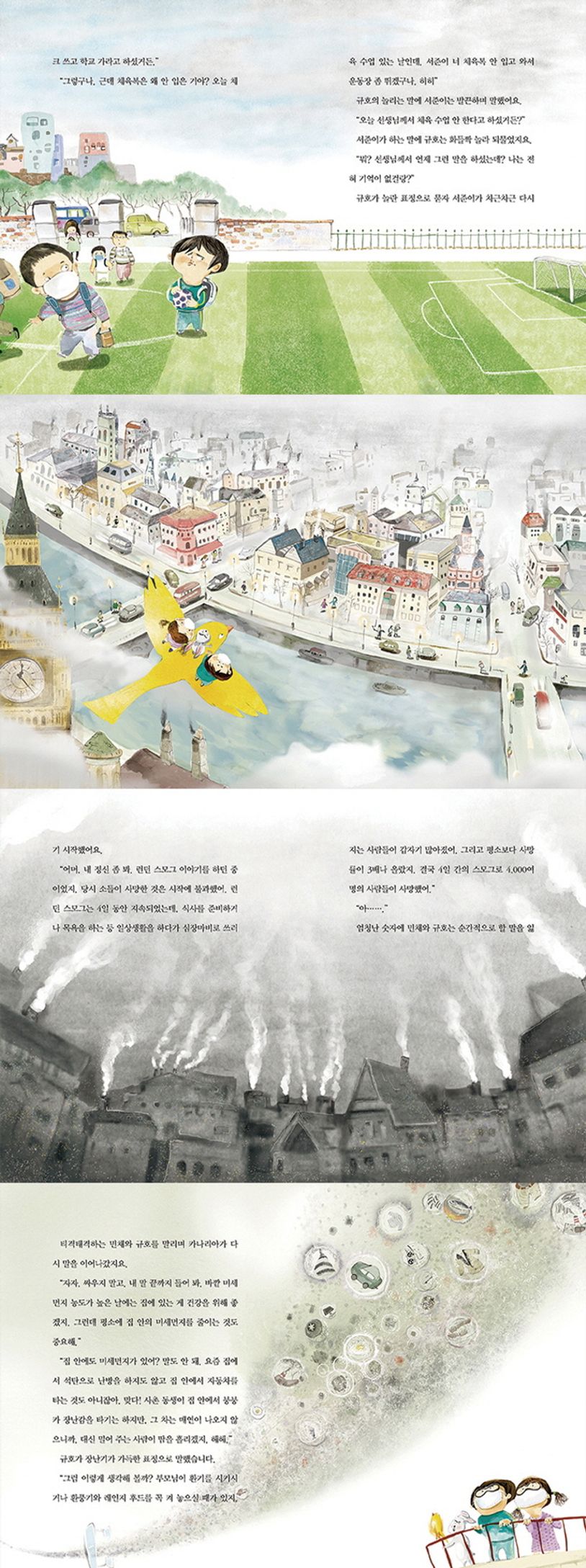 규호는 자신이 좋아하는 축구를 마음껏 하고 싶어서 미세먼지에 대해 의문을 갖기 시작합니다. 판타스틱한 여행을 통해 ‘미세먼지, 초미세먼지가 뭘까?’, ‘도대체 왜 생기는 거야? 왜 몸에 나쁜 거지?’, ‘미세먼지를 줄일 수 있는 방법은 무얼까?’라는 생각을 하게 되면서 스스로 미세먼지에 대한 심각성을 깨닫게 됩니다.