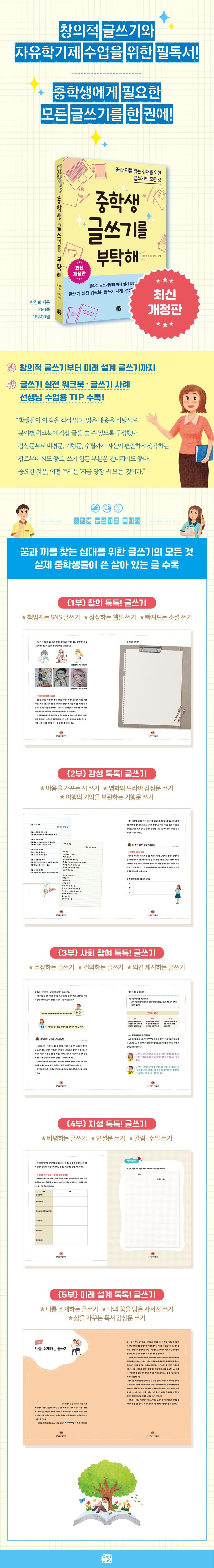 중학교 자유학기제와 자유학년제 글쓰기 수업에서 큰 사랑을 받은 《중학생 글쓰기를 부탁해》의 최신 개정판이 출간되었다. 기존 내용을 업데이트하여 독자들이 더욱 쉽게 활용할 수 있도록 하였다.