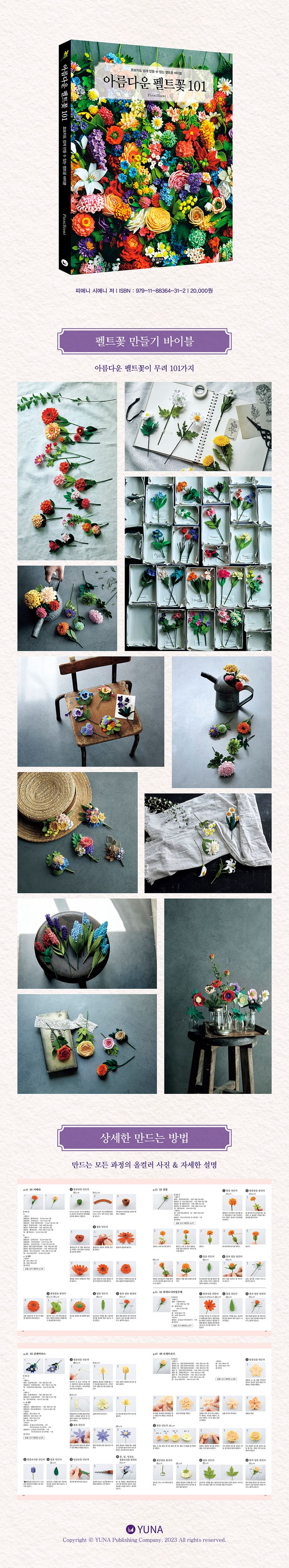 당신의 손으로 직접 만든 작품으로 다양하게 활용해보세요. "아름다운 펠트꽃 101"과 함께한다면, 당신의 창의성을 끌어올릴 뿐 아니라, 자신감도 함께 선사해줄 것입니다.