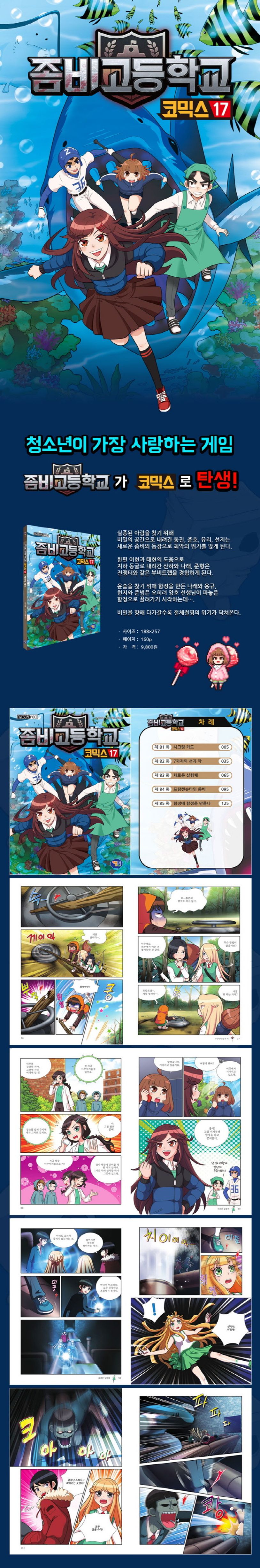 좀비고등학교 게임 마니아 한가람을 중심으로 사건사고가 벌어지는 『좀비고등학교 코믹스』. 추리작가가 되는 것이 꿈인 평범한 초등학생이었으나 우연히 게임 속의 모습과 비슷한 학교를 발견하면서 예기치 않은 상황 속에 빠지게 된 한가람. 거기에 누구에게나 친절해 인기가 많은 모범생 소녀 이유리, 과묵해보이지만 사실은 말하는 것조차 귀찮을 만큼 게으른 성격을 가진 같은 반 친구 김준호, 혼란에 빠진 가람을 도와주는 남동진, 사랑스러운 모습의 반전으로 뛰어난 운동신경을 가진 정예슬 등 개성만점 캐릭터들이 모두 모여 보는 재미를 더해준다.