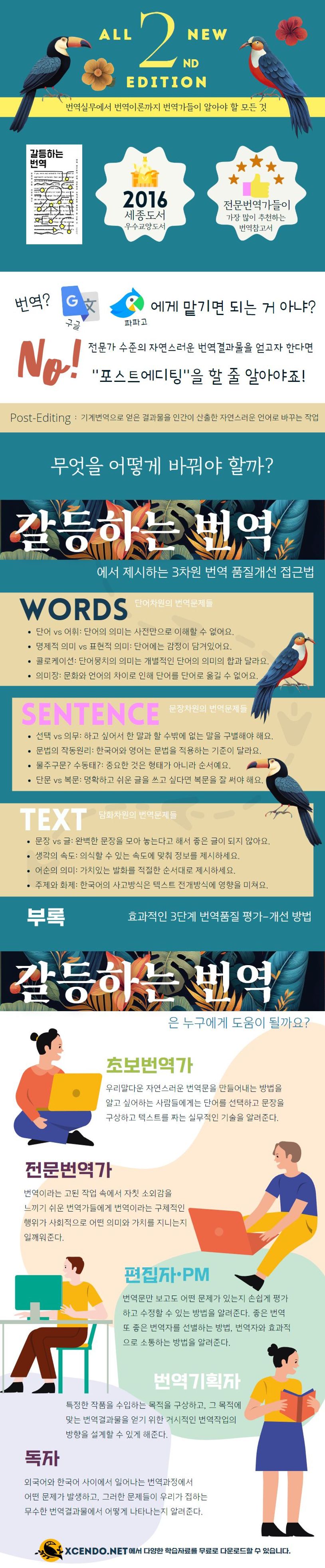 2015년 12월 글항아리 출판사에서 출간되어 초보번역가들이나 번역가 지망생들은 물론 전문번역가들에게도 많은 지지를 받았던 《갈등하는 번역》이 7년만에 전면 개정판으로 다시 선보인다. 개인적인 경험이나 막연한 느낌만으로 번역방법론을 설파하는 기존의 번역관련 책들과 달리 언어학과 번역학에 기반하여 번역의 원리를 설명하고 좋은 번역을 판단하는 기준을 해설하는 이 책은 출간 당시 많은 번역가들은 물론 글쓰기에 관심이 있던 분들에게 상당한 호응을 받았다.