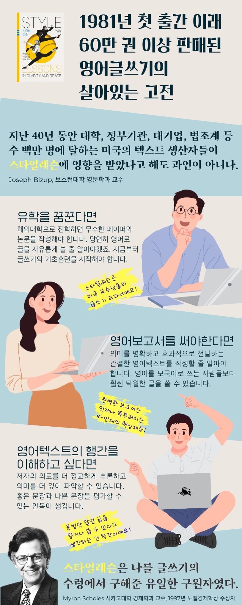 도자기를 빚는 과정을 이해하면 좋은 도자기를 알아보는 심미안이 생기기 마련이다. 글을 쓰는 과정을 이해하면 당연히, 글을 읽는 눈도 밝아지기 마련이다. 《스타일레슨》을 통해 영어 글쓰기를 이해하면, 어려운 글도 스스로 편집해가면서 읽어낼 수 있을 뿐만 아니라 문장 속에 숨어있는 ‘행간의 의도’까지 읽어낼 수 있는 혜안이 열릴 것이다.