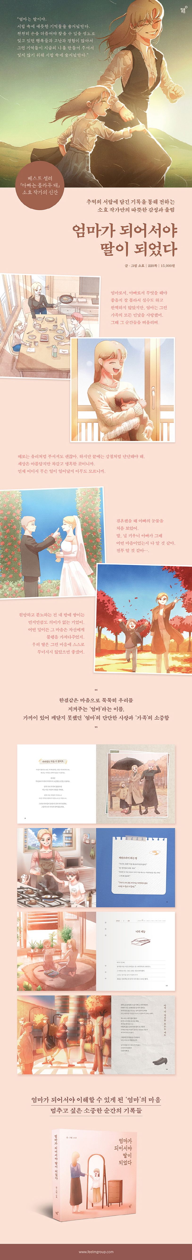『엄마가 되어서야 딸이 되었다』는 전작 『아빠는 몰라두 돼』로 많은 사랑을 받았던 소효 작가의 두 번째 그림 에세이다. ‘가족’에 대한 연작 시리즈로, 전작 『아빠는 몰라두 돼』가 7살 여자아이 ‘구나’의 시점으로 가족의 모습을 담고 있었다면, 신작 『엄마가 되어서야 딸이 되었다』는 ‘구나’의 엄마인 ‘유아’의 시점으로, 추억을 담고 있는 네 개의 서랍장으로 구성되어 있다. 첫 번째 서랍장은 남편과 ‘구나’와 함께하는 가족으로서의 일상과 순간의 행복을 담고 있으며, 두 번째 서랍장은 엄마로서 딸 ‘구나’에게 전하는 메시지들이 담겨 있다. 세 번째 서랍장은 딸 ‘구나’가 배 속에 있던 순간부터 태어나 한 아이의 엄마로 자라기까지의 과정을 일기를 통해 기록하고 있으며, 마지막 네 번째 서랍장은 ‘구나’의 엄마인 ‘유아’의 어린 시절의 기록부터 엄마가 되어서야 딸이 될 수 있었던, 그래서 비로소 엄마를 이해할 수 있게 된 과정을 깊이 있는 감성으로 전하고 있다.