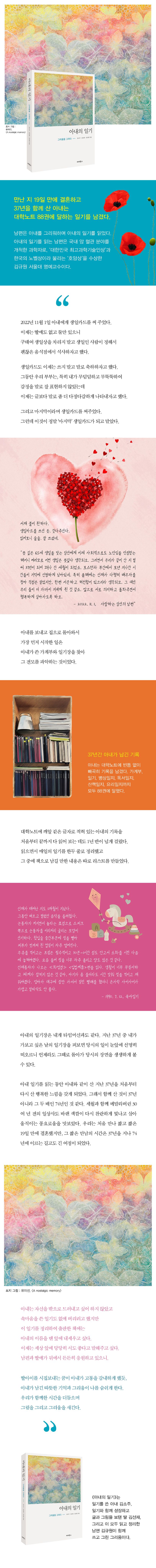 류머티스 관절염에 오랫동안 시달려온 아내는 대학병원에 입원하고 항암치료를 하는 동안 갑작스럽게 세상을 떠났다. “아내를 보내고 집으로 돌아와서 가장 먼저 시작한 일은 아내가 쓴 가계부와 일기장을 찾아 그 전모를 파악하는 것이었다.” 그리고 1년 반 동안 아내가 남긴 기록을 읽었다. 만난 지 19일 만에 결혼하고, 37년간의 함께 산 기간이 고스란히 담겨 있었다.