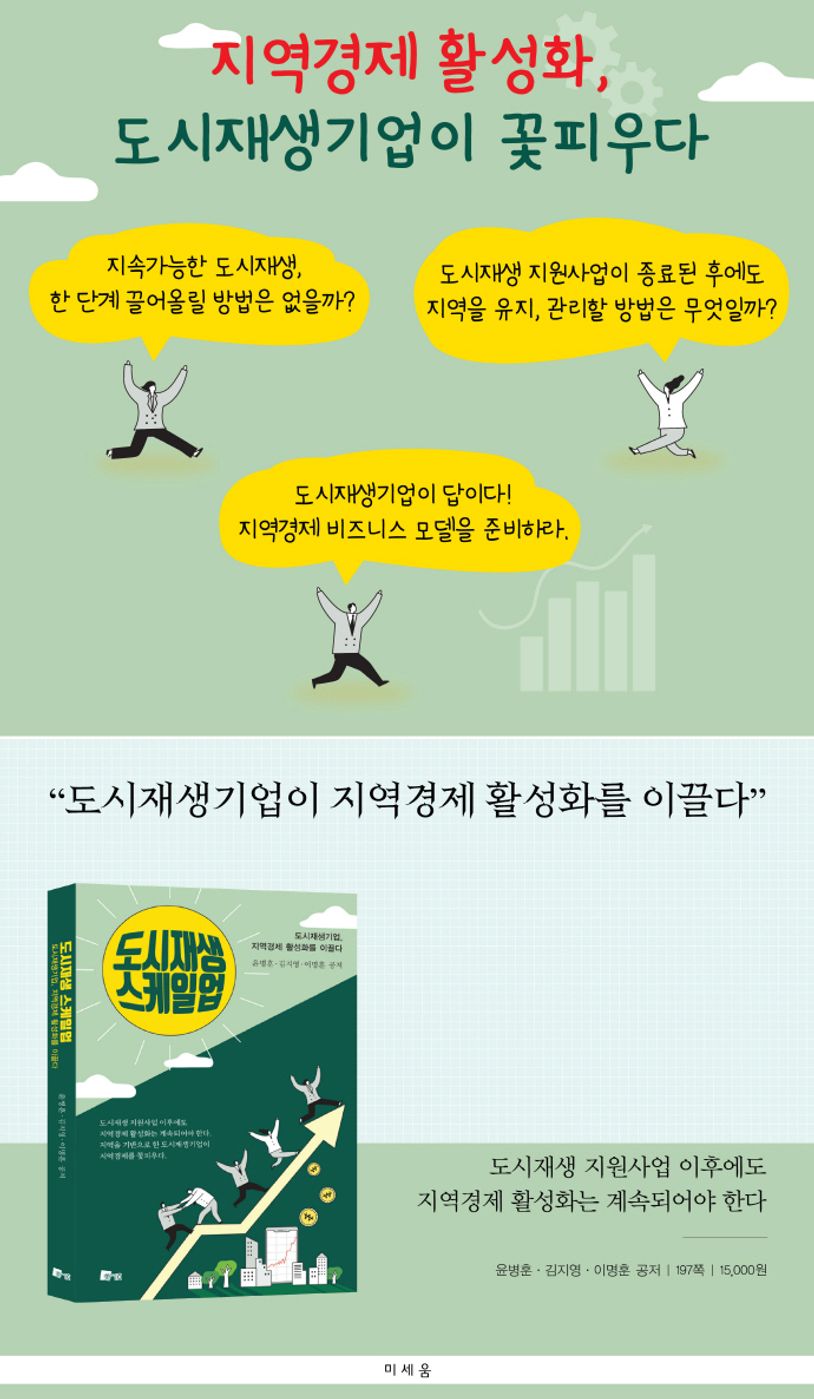 도시재생의 성공적인 사례와 방법론이 넘치는 가운데 사업이 종료된 이후의 지속가능성을 고민하고 해결책을 제시한 책이 나왔다. 도시재생 현장에서 현실적인 문제를 접해온 저자들이 도시재생사업이 종료된 이후에도 지역경제를 이끌어갈 방법을 모색한 책이다. 저자들은 재개발, 개건축과는 달리 쇠퇴한 지역을 주민들이 주도해 문제를 해결하고 경제 활성화를 달성하기 위해 도시재생기업에 주목한다.