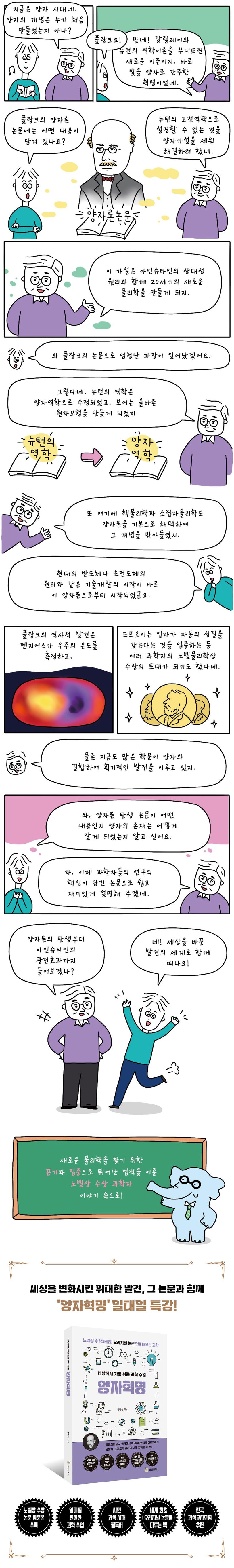 《세상에서 가장 쉬운 과학 수업 양자혁명》은 플랑크의 양자론에 초점을 맞추었다. 플랑크가 양자론 최초의 논문을 완성한 시점에서 이 논문을 쓰기 위해 공부했던 열역학 이야기를 역사적으로 재미있게 풀었다. 동시에 플랑크가 사람들에게 알려주고 싶어 했던 것을 그의 오리지널 영문 논문으로 자세히 소개했다.