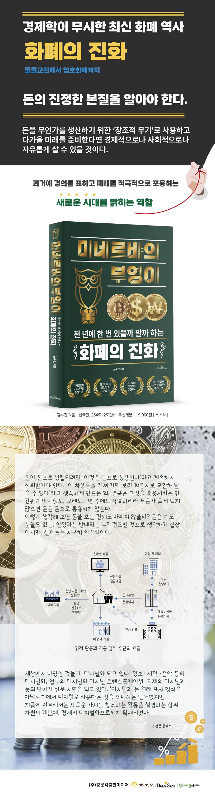 《미네르바의 부엉이: 천 년에 한 번 있을까 말까 하는 화폐의 진화》는 과거에 경의를 표하고 미래를 적극적으로 포용하는 새로운 시대를 밝히는 역할을 하고 싶다.