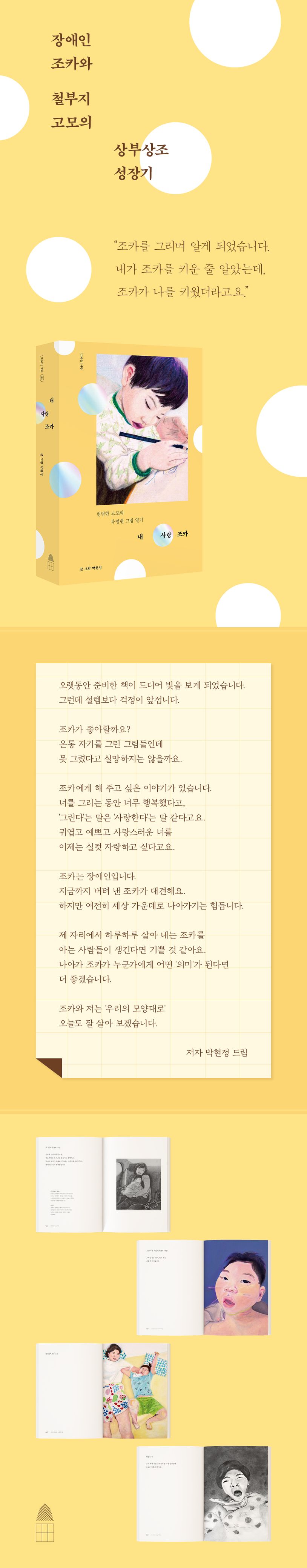 뇌 손상을 입고 태어난 장애인 조카를 오빠 부부와 함께 돌보게 된 작가가 하루하루 주어진 시간을 충실하게 살아 내는 조카와 보낸 일상을 글과 그림으로 기록했다. ‘조카를 돌보며 나를 돌보았다’고 고백하는 고모와 세상 그 어떤 아이보다 용감한 조카의 상부상조 성장기를 통해 ‘돌봄’의 의미를 묻는 따뜻한 그림책이다.