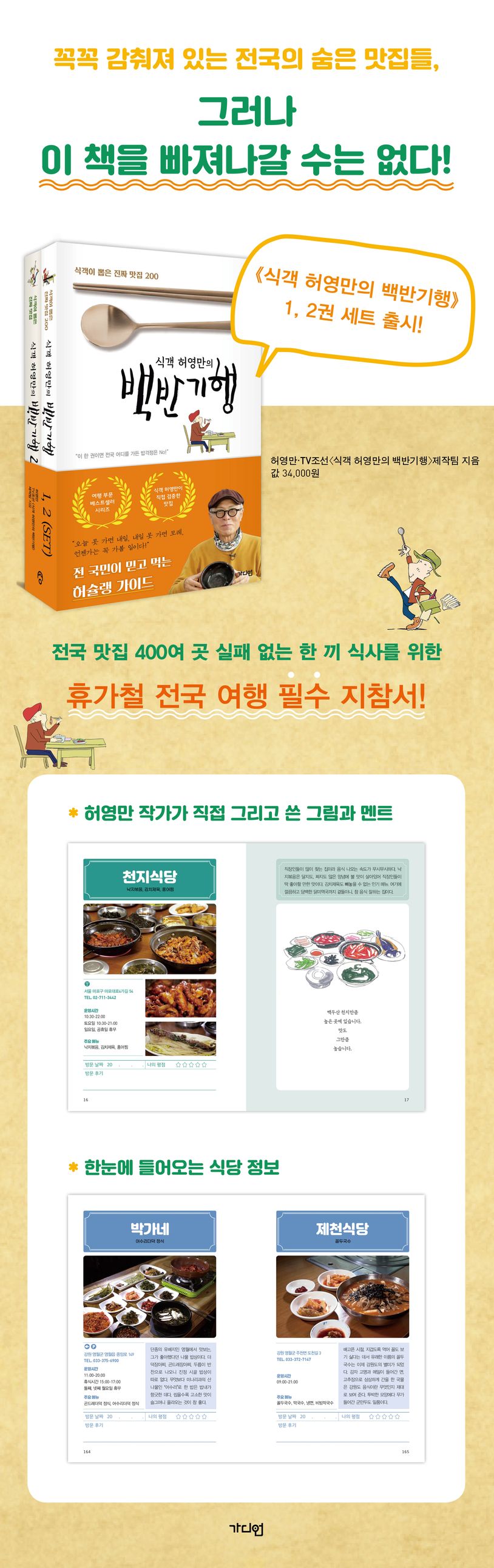 총 6개 지역(서울, 인천/경기, 강원, 충청, 부산/경상, 전라)의 음식점을 한데 모은 이번 책은 지역별 맛집 지도와 나만의 노트를 추가했다. 전국 팔도 곳곳을 세분화한 지도는 도, 시·군별로 식당들의 위치를 한눈에 파악할 수 있도록 표시했으며, 식당 이름과 대표 메뉴를 함께 실어 지도 하나만 봐도 국내 여행객들이 맛집을 빠르게 찾을 수 있도록 구성했다.