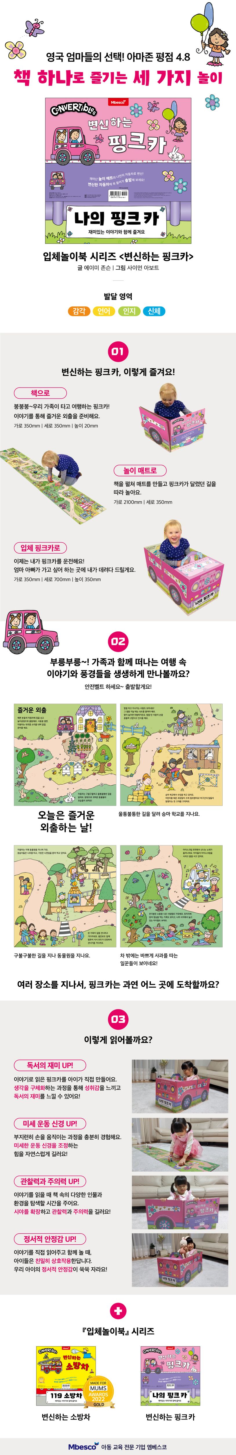 또한 변신하는 핑크카는 길게 펼쳐 매트나 벽보로도 활용할 수 있답니다. 가정에서 독서를 즐길 수 있는 공간을 변신하는 핑크카 책으로 만들어보세요!